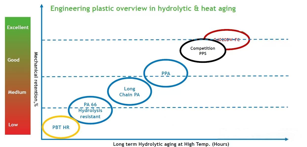 最后提醒:选材时务必预留“性能余量”。例如,即使PA66+GF30的长期耐温为150℃,实际工况也应控制在130℃以内,以避免材料加速老化。