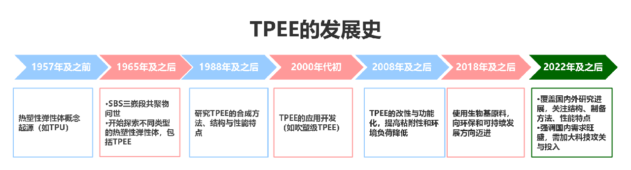 全球TPEE需求持续增长,亚太地区占比近半。其发展趋势显著:技术上,研发不断深入,有新型材料合成、改性及拓展应用领域,如反应挤出法制备高分子量TPEE、电子束辐照交联提高力学性能等;环保方面,向生物基和可降解发展,如引入磷元素提高阻燃性能;应用从传统领域向电子电气、电线护套等扩展,发泡技术如超临界CO₂发泡提高轻量化和性价比。国内市场需求旺但发展落后,需加大科技投入,完善产业链,推动国产化。总体呈现市场需求增长、技术创新、环保可持续、应用拓展及产业链完善国产化的趋势。