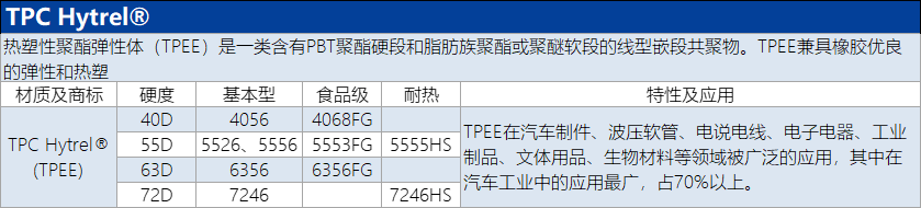定形难度:TPEE摩擦系数高,定形较困难,高硬度TPEE更易定型。