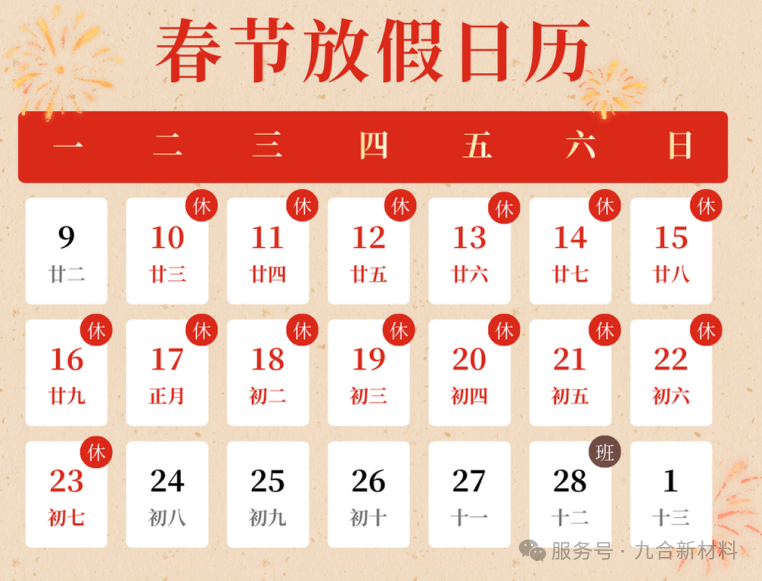 新春的脚步渐近,九合新材料谨向您及团队致以诚挚的问候与祝福。感谢您在过去一年中的信赖与同行。